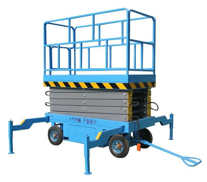 6、對于移動式的升降平臺,工作前,操作員一定要按說明書的要求平整停機場地,牢固可靠地打好支腿才行。